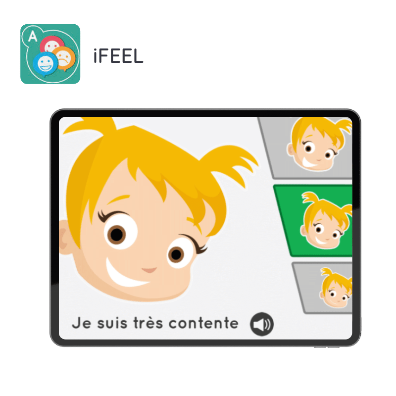 iFeel est une application pensée pour aider les utilisateurs à reconnaître, nommer et exprimer leurs besoins, émotions, ressentis. L’interface intuitive permet de choisir une émotion parmi plusieurs visuels, puis d’en explorer le sens à travers des animations, des sons ou des mises en situation. Tout est personnalisable : visuels, mots, voix, pour correspondre au vocabulaire et aux repères de chaque utilisateur.