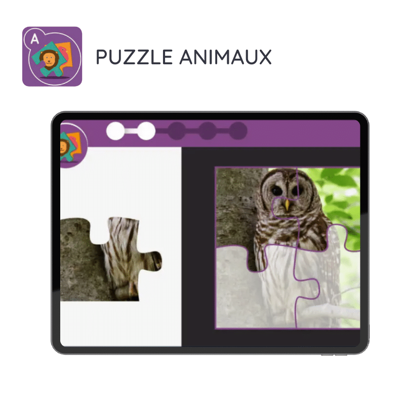 Puzzle est une application simple et visuelle qui permet de reconstituer des images en les assemblant comme un puzzle. Elle développe la concentration, la motricité fine et la perception visuelle. L’utilisateur choisit une image, puis la recompose pièce par pièce. Le nombre de pièces est ajustable, pour adapter la difficulté. Il est aussi possible d’importer ses propres photos, pour personnaliser les activités selon les goûts et les repères de l’utilisateur.
