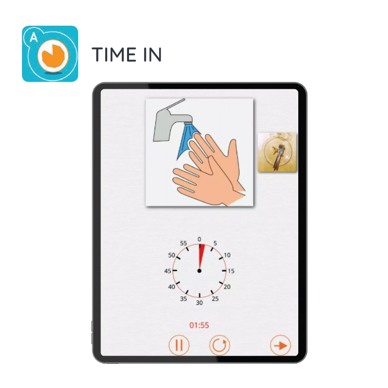 Time in est une application qui aide à visualiser le temps qui passe, un repère essentiel pour de nombreuses personnes avec autisme ou troubles cognitifs. Grâce à un minuteur visuel coloré, l’utilisateur peut voir le temps s’écouler en temps réel, ce qui le rassure et l’aide à mieux gérer l’attente ou les transitions. L’interface est simple, ludique et entièrement personnalisable : choix des couleurs, des durées, des sons, des pictogrammes ou photos associés. Time in peut être utilisée pour structurer la journée, signaler un changement d’activité, ou indiquer une durée d’attente.