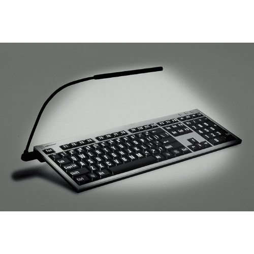 Le clavier Gros Caractères Logickeyboard est livré avec une lampe LED « Logiclight » à brancher en USB sur le clavier pour l’éclairer et améliorer encore davantage la lisibilité des touches.