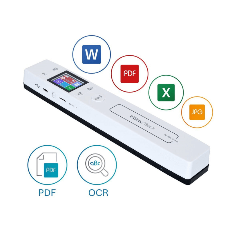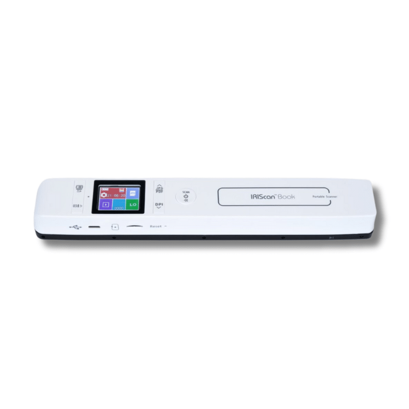 L’IRIScan Book 7 est un scanner portable qui permet de numériser des livres et des documents en le faisant simplement glisser sur la page, sans ordinateur. Léger, sans fil et rechargeable, il enregistre les scans en PDF ou JPEG sur une carte microSD, puis les transfère facilement sur PC ou Mac.