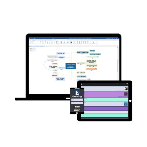Avec l’application mobile MindView Assist à télécharger gratuitement en complément de votre logiciel, prenez des photos, enregistrez des notes vocales, récupérez la référence d’un ouvrage en scannant son code-barre. Intégrez tout plein contenu additionnel et organisez-le dans votre carte mentale via l’application mobile, et retrouvez ensuite tout ce contenu sur votre ordinateur.