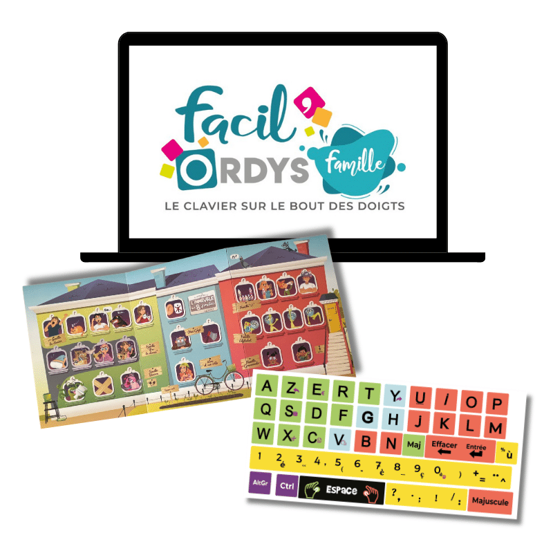 Le Pack Famille Facil’Ordys combine un logiciel ludique, des stickers pour clavier et un plateau d’apprentissage pour accompagner efficacement les enfants dans leur découverte du clavier.